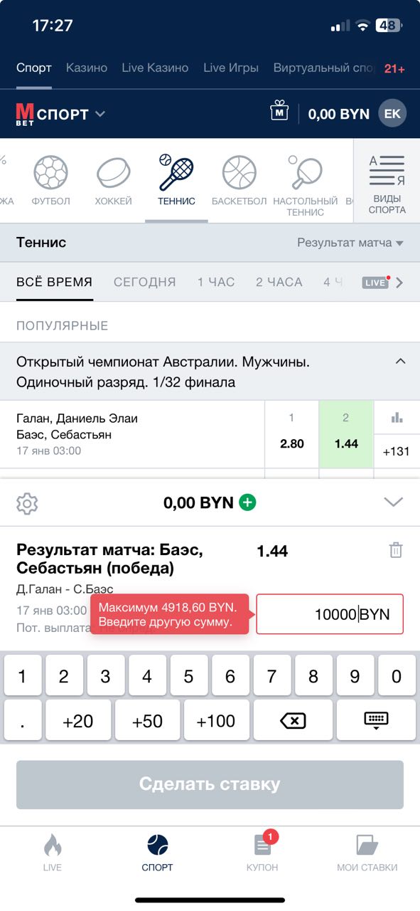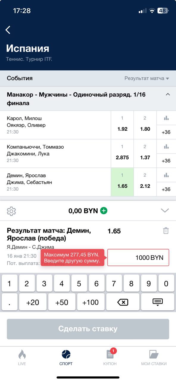 Уход игроков за рубеж чаще всего происходит не потому, что им просто так хочется, а потому, что у них не остается возможности нормально играть в Беларуси. Ведь зачем усложнять себе жизнь: переводить деньги на счета БК в другие страны, откуда в условиях санкций можно впоследствии не получить выплаты, или уплачивать налог по ставке 13 % вместо 4 % при получении выигрыша, или даже проходить усложненные процедуры верификации для иностранных игроков. Однако в нынешних условиях, когда у БК развязаны руки, играть невозможно. Приведу свой личный пример.